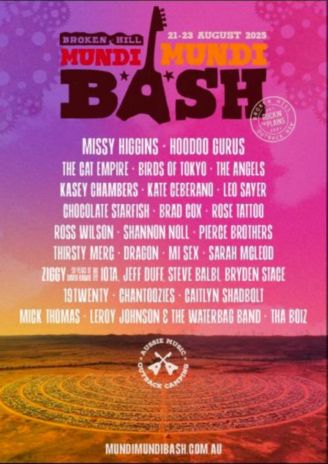 The 2025 Broken Hill Mundi Mundi Bash event will feature a stellar rollcall of top Aussie acts who will rock Australia’s biggest Outback music event – the Broken Hill Mundi Mundi Bash from August 21-23, 2025.