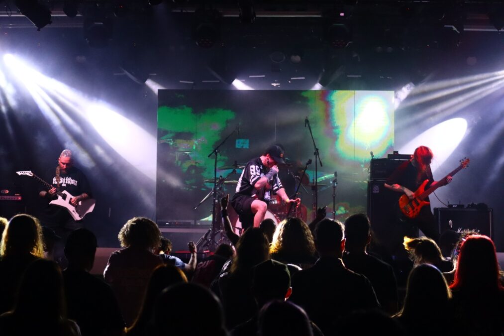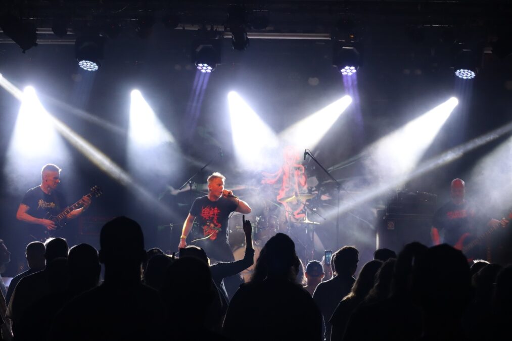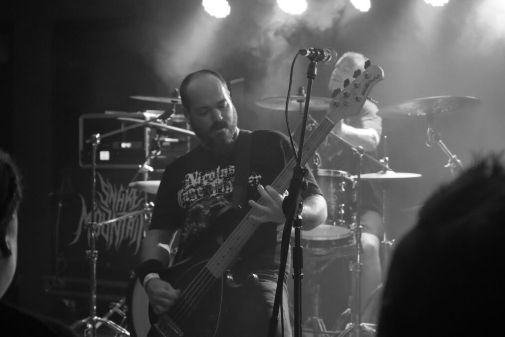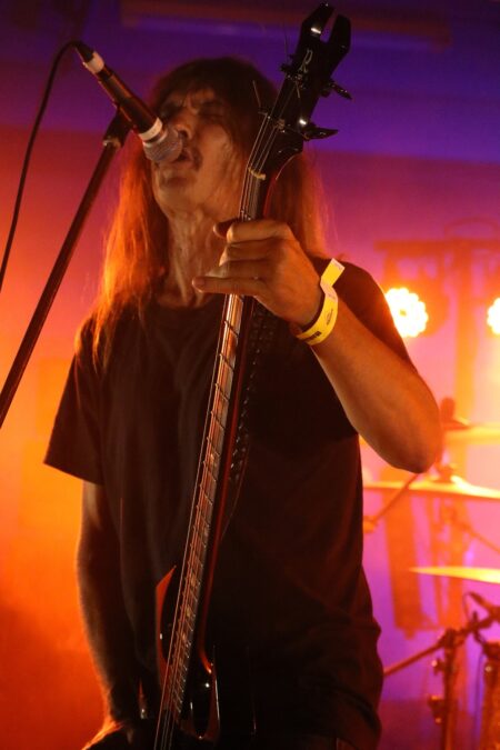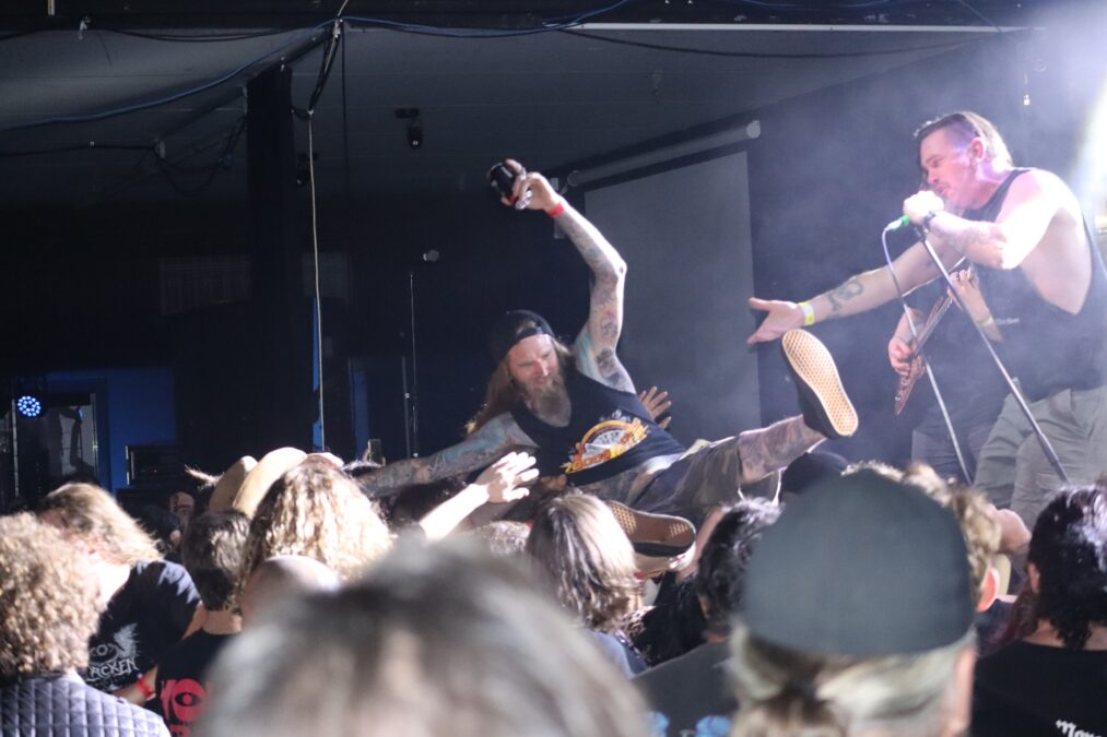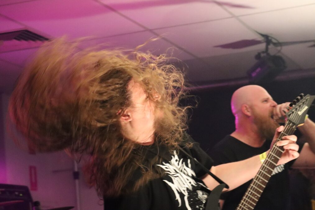 Next up is Pustilence on the Blackened Records stage back in the main room. This is some fucking Brutal Death Metal with relentless double kicks, guttural screams and absolutely shredding guitars. And speaking of, Snake Mountain are doing much of the same, albeit a little groovier, back on the Black Flag Brewing stage and you know how they do it, they do it brutally. Frontman Nev does some quick little “aye oh” Freddy Mercury thing before he blesses us all with power of Greyskull before they unleash the brutals again. Sound legend Chippy gets a call out for his Mint sound, as always and the band gets a massive moment of crowd participation as the crowd chants hey with their fists and horns in the air.