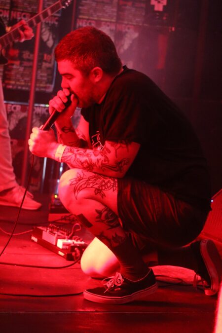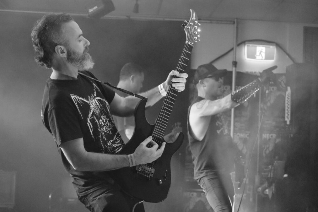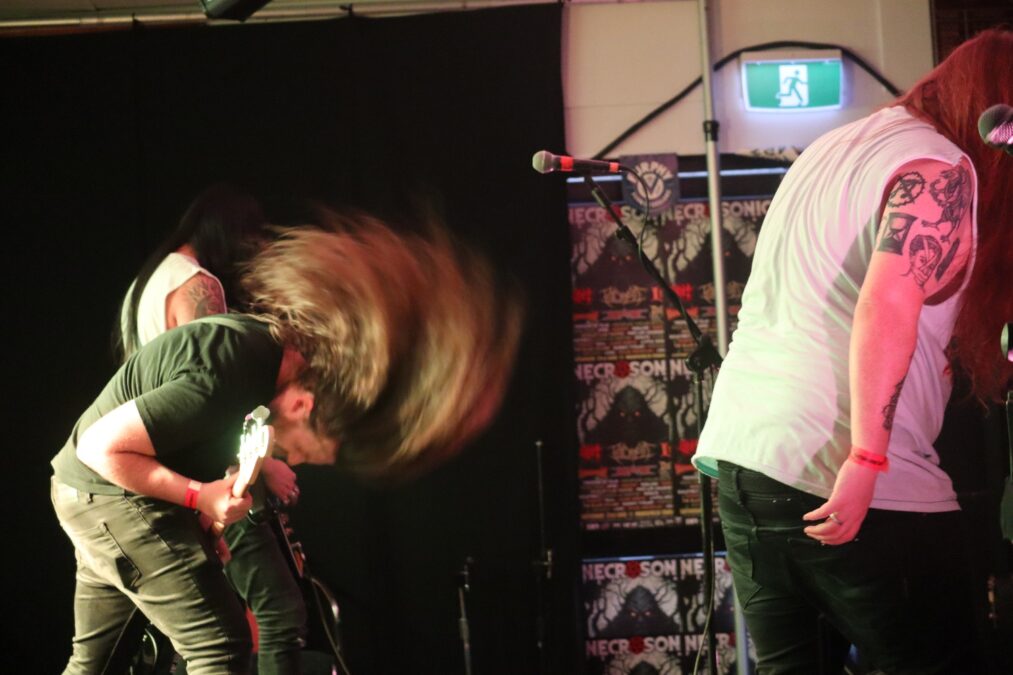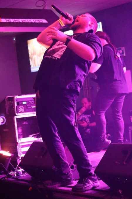 It’s only 1pm, and there are already a fuck ton of people here, including at the Black Flag Brewing stage where 308 are pumping out their second last song. This stage is set up in the public bar where they have black out all the windows with massive Necrosonic posters. It’s got quite the vibe. 308’s last one was called Baptised in Bullets, and it was some mother fucking Heavy Thrash. If you know these guys, you know how they do it!