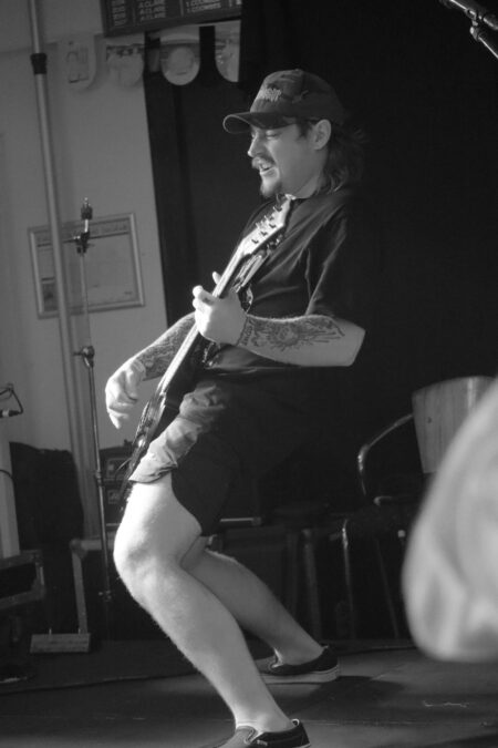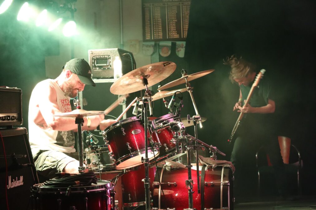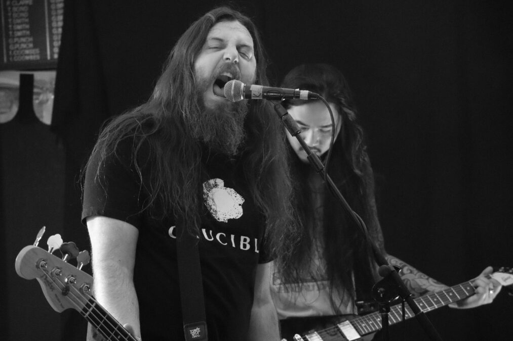 As I walk back into the Black Flag Brewing stage, Slowcut are chugging away hard with a slow but heavy groove. These guys sludge hard with thumping drumbeats and guitars that sound like they are being strangled to produce a downtrodden dirty tone. A slow clean guitar section in one of their tracks shows of the band’s gentler side, but for some reason it’s a little unnerving.