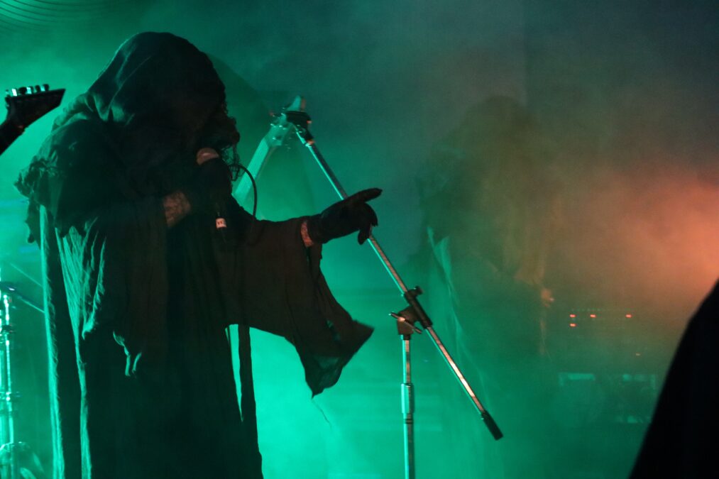 I’m not sure what the hell I just walked into in the Cathedral of Death, but there is some kind of satanic death cult ritual happening on the Blackened Records stage, and it goes by the name of Spire. Well, the death cult thing might be a bit of a stretch but going by the black hooded robes on stage I might not be far off the mark. The tunes are very dark, and very evil. The kind that makes ya feel all warm and fuzzy inside if you’re the kind of metal fan that goes out in public in corpse paint. And yeah, there is a fair few of those here. The rest of the crowd stares in astonishment and disbelief at these evil cult master’s I’m not even gonna try and guess any genders in this band cause ain’t nobody got time for that. And honestly, who cares. Apparently, they are from Japan or so somebody’s just told me. Turns out that’s. untrue and they are from Melbourne, so I’m glad I didn’t touch those pronouns.
