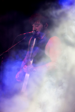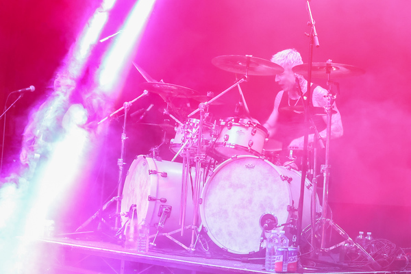 The PA levels seem like they could do with a bit of a boost for these upper levels, so I quickly head downstairs to see if the mix is stronger at pit level. It is a lot stronger down on the floor and as I get there the band’s pop sensibility starts pushing through with some melodic vocals from the stage right guitarist hovering over the heavy pounding grooves.