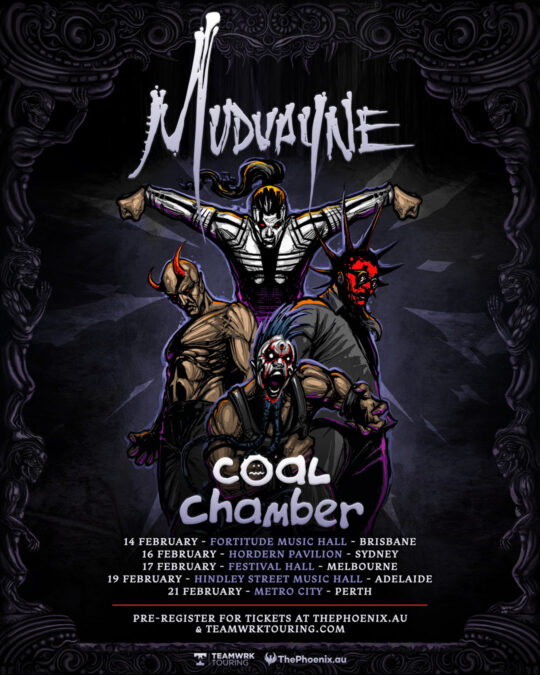 Having always held a soft spot for their Australian fans, Mudvayne have declared February 2024 as payback time for their patient followers on this side of the world, bringing with them another reunion success story in the once more Dez Fafara led Coal Chamber.