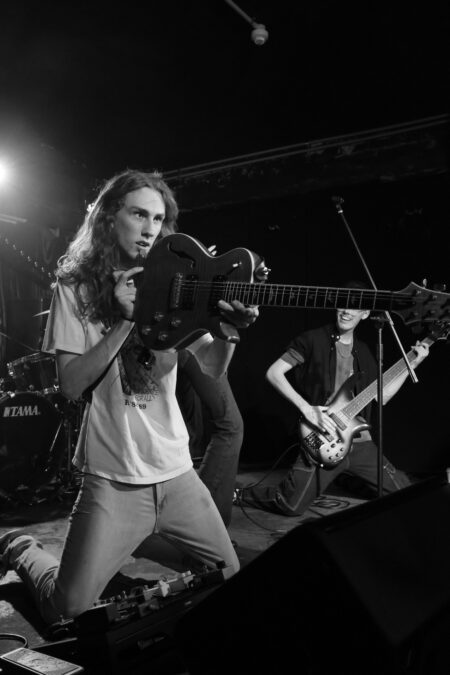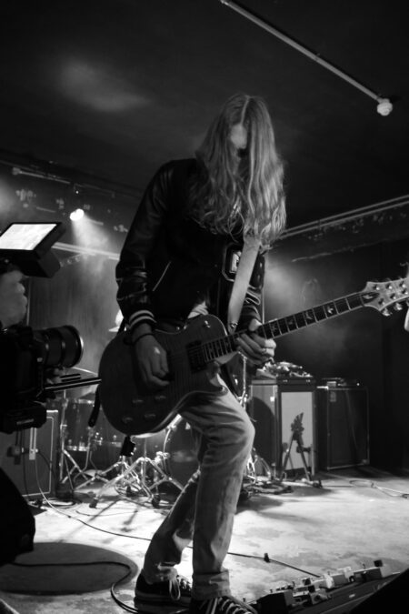 The evening commenced with Slythr taking to the stage. And, it was bang on time as well. I just managed to grab my drink from the bar and race to the stage area as the band kicked off their original song, Player Boy. And, what a huge sound Slythr made! It was ‘the pedal to the metal’ right from the start. Slythr powered on into Heartbreak Hotel and the terrific Control Freak. Then, guitarist Harry Shield, who had worked up a sweat, had the jumper off, and then the crowd did the same, as the band had brought the heat into the venue.