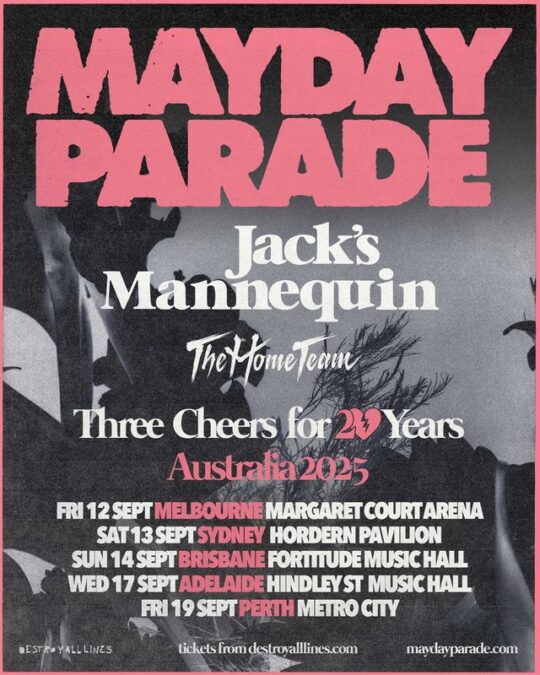 The Home Team are travelling to Australia for the second time – this time with Mayday Parade – for the Three Cheers For 20 Years tour, after crossing the ocean last May with Caskets (UK).