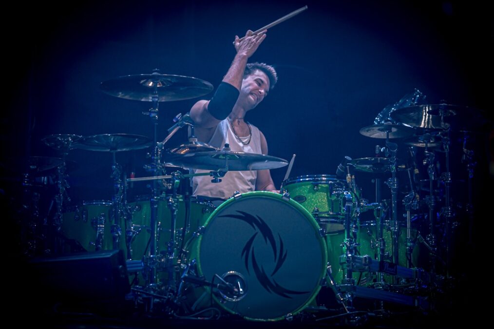 To their credit, Volbeat are not trying to wow or win audiences over with a myriad of bells and whistles such as elaborate stage production designs, over-the-top light shows or even with the somewhat standard overkill of pyrotechnics many rock and metal bands often deploy in concert these days. Instead, lead vocalist and rhythm guitar player Michael Poulson, drummer Jon Larsen, bassist Kasper Boye Larsen and current touring lead guitar player Flemming C. Lund simply lean heavily on a ton of smiles, mountains of positive energy, their sublime live chops as players and of course, their brilliant catalogue of underrated recorded music to win the masses over.