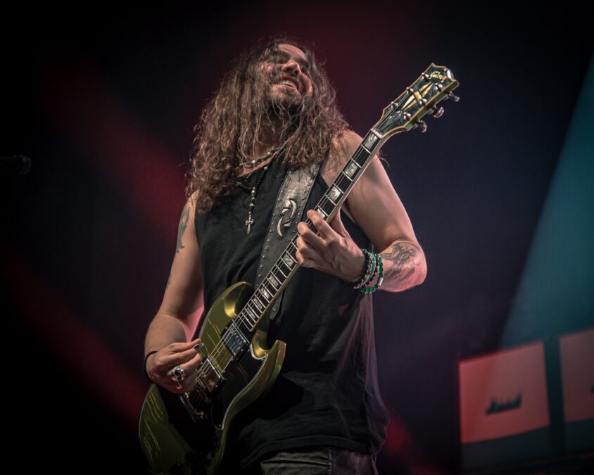 The growing-in popularity-by-the-second, Halestorm, fronted by perhaps one of the most electric female performers on the planet today – the fiery Lzzy Hale – helped open things Volbeat. Sadly, the audience only had the opportunity to take in a truncated set by Halestorm after a storm saw the Pennsylvania-based rockers deliver just over a twenty-five-minute set of music that typically has run over an hour in duration in most markets of this current tour’s run.