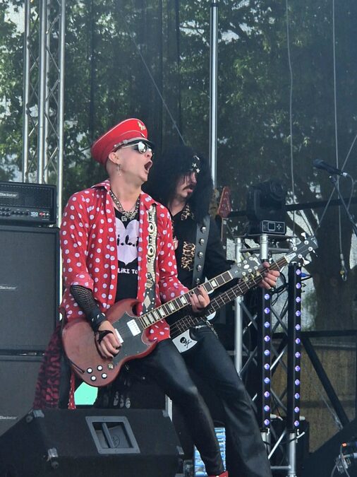 Kicking the day off with a real band was Deadfire – full on metal with a brilliant hard edge. Cracking way to wake up. Bobbie Dazzle are a very special band, 70s style with a modern twist, and an absolutely fabulous band that you must check out. Suicide Bombers hit the stage with a style all of their own, bombastic tracks with a pin-sharp delivery, they started the barrage of glam that took the day by storm. Continental Lovers are a real treat for glamsters and fans of good time rock ‘n’ roll, and played an excellent set that was followed by another storming glam set by Trench Dogs – full on 80’s/90’s glam with the licks, hooks and swagger you’d expect, a joy to see!