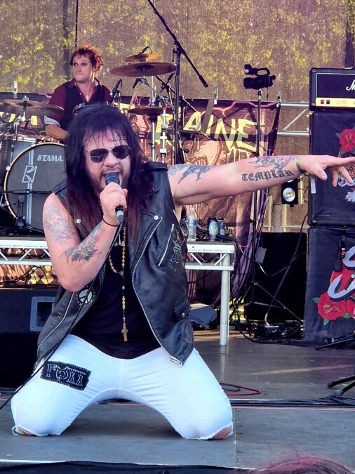 Let’s start early doors and Syteria jumped on early to wake us all up. The band featuring Jax from Girlschool never fail to deliver and always have as much fun as we do. A highlight of Saturday was a relatively new band, Austin Gold. Proper classic rock, all delivered with a real passion and polished to the top and a “slutdrop” keyboard. What, you might ask? Well, it’s been a very long time since we’ve seen a keyboard player have so much fun, in fact most of the crowds’ eyes never moved from him, brilliant. Saturday was also a day of surprises, well maybe not such a well-kept surprise, but the arrival of Spike from the Quireboys certainly caused a stir! Playing in the tent, the absolutely rammed tent Spike delivered a non-stop set of classics, hilarious stories that only a true legend can put together. It was certainly a day of contrasts. The party continued into the small hours, most people preparing for the final assault of glam Sunday.
