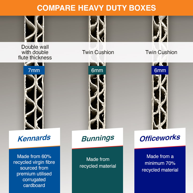 Premium utilised corrugated cardboard, sourced from Australian retailers, is used to produce Kennards boxes.