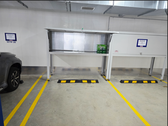 There are two car storage options offered an open space measuring approximately 6m deep by 3m wide. There is also the option for a 6m x 3m space with a command storage locker in the space. This option provides storage space to house all your car gadgets and accessories. So when you want to come in and tinker or detail your car, all your accessories are ready and accessible.